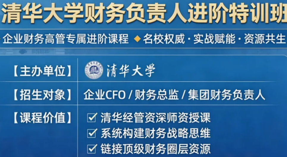 2026 年,清华大学依托顶尖学术资源与深厚企业实践积淀,重磅推出财务负责人进阶特训班(财务总裁班),为渴望突破职业瓶颈、实现格局跃升的财务精英,打造系统化成长快车道。