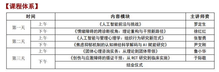 | 第三天 | 下午 | 《创伤与应激障碍的循证干预:从 RCT 研究到临床实施》 | 于际敬 | - |