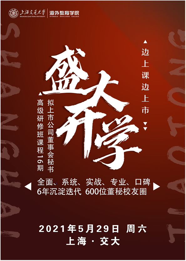 上交大董秘课程3-4月课程安排如下,如有试听,请择课安排: